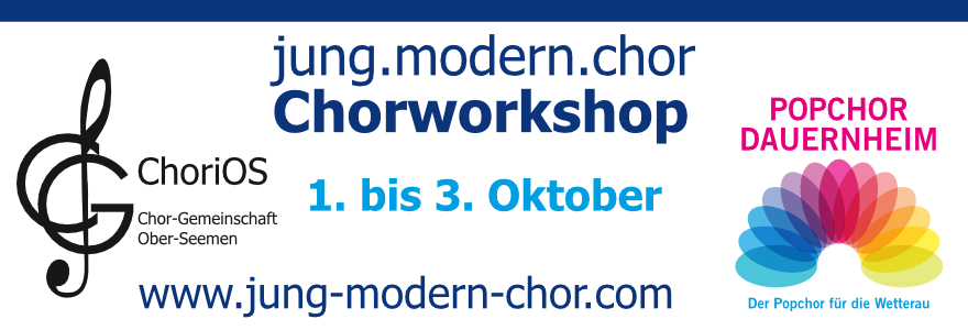 „jung.modern.chor“ - Das ist das Motto eines Workshops, den die Gesangvereine aus Dauernheim und Ober Seemen gemeinsam auf die Beine stellen! Die beiden jungen Chöre „ChoriOS“ und der „PopChor Dauernheim“ wollen damit Werbung für modernen und zeitgemäßen Chorgesang in der Wetterau machen und beweisen, dass auch aktuelle Hits im Chor cool klingen und begeistern können!